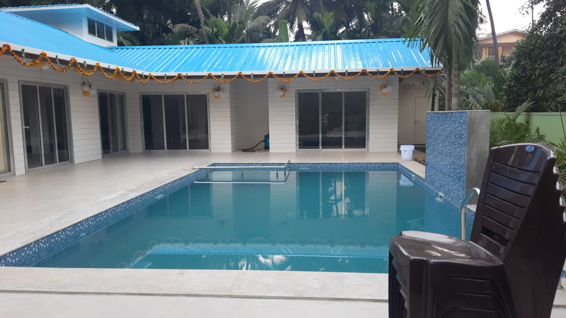 The property boasts three spacious bedrooms, ensuring comfort and relaxation during your stay. Immerse yourself in the tranquility of the surroundings, complemented by a beautiful outdoor pool basking in the warm sunlight. Enjoy the shade of coconut trees and the lush greenery of a well-maintained lawn, providing a peaceful and serene atmosphere.