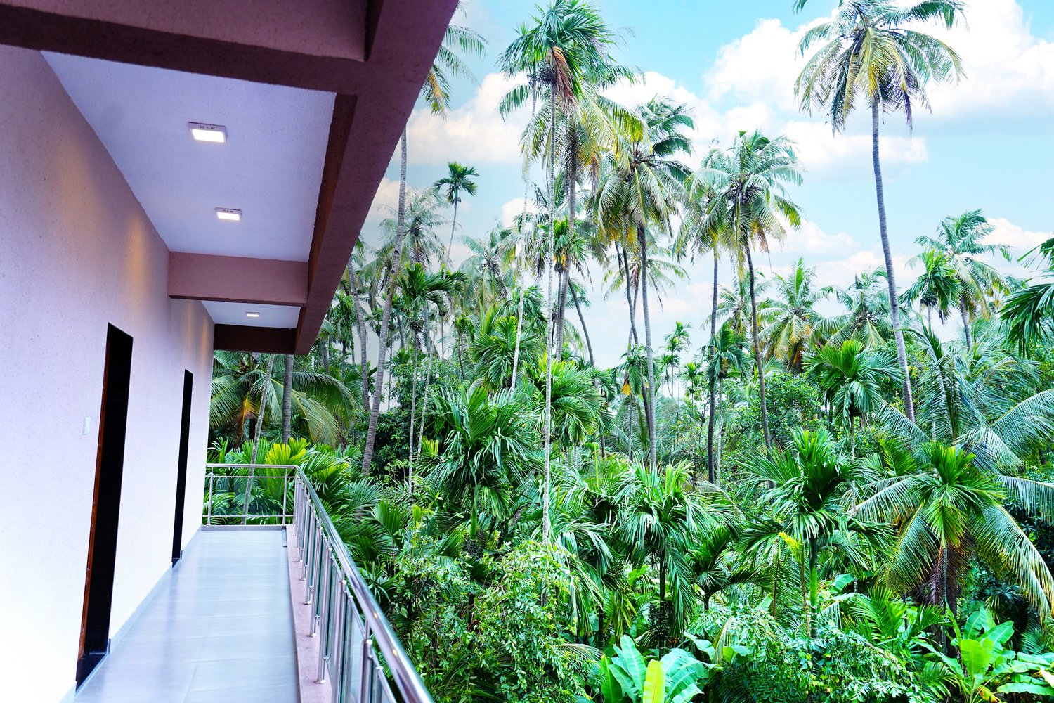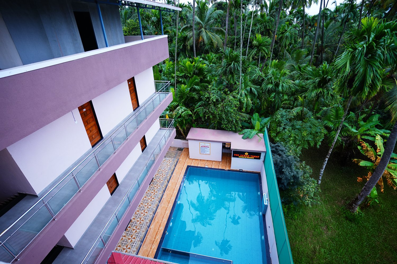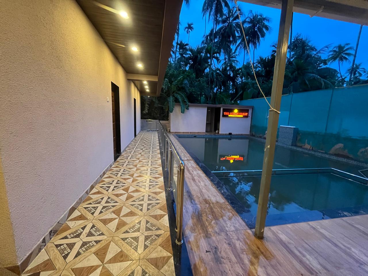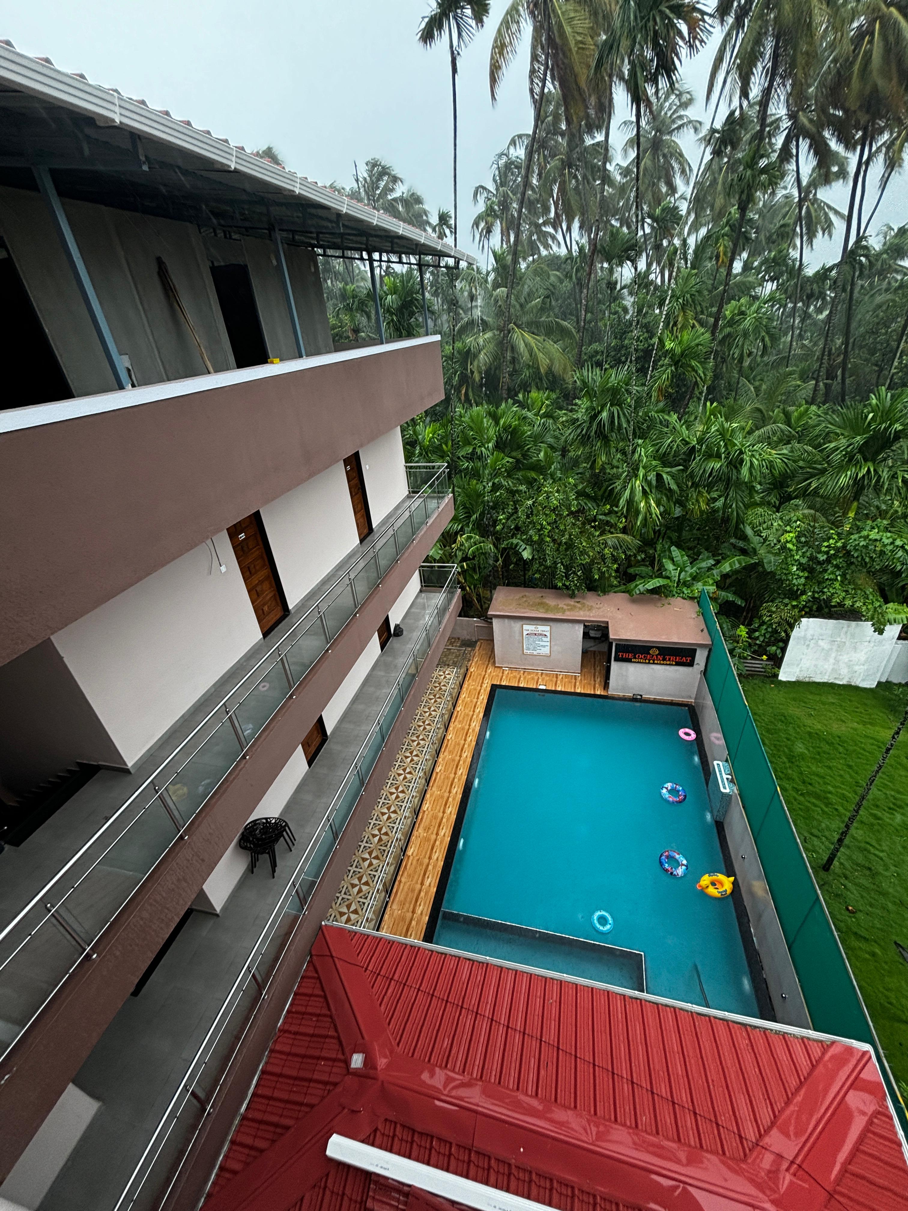 - Swimming Pool: Dive into relaxation at our expansive swimming pool, offering stunning views of verdant coconut trees and the clear blue sky. It's the perfect spot for unwinding or enjoying a refreshing swim.