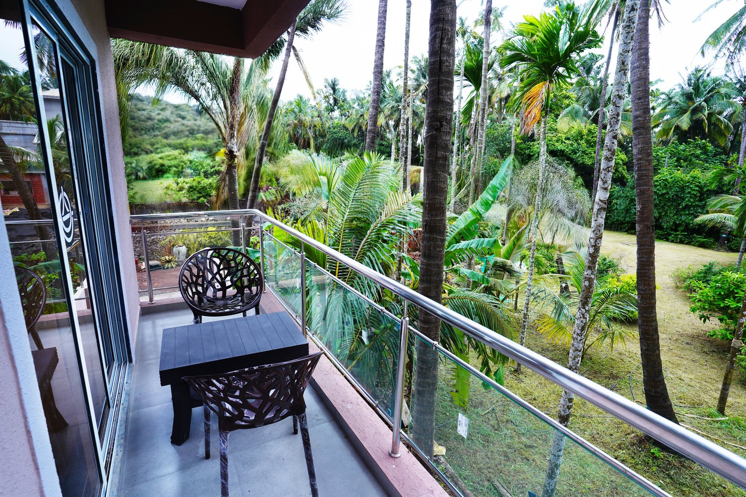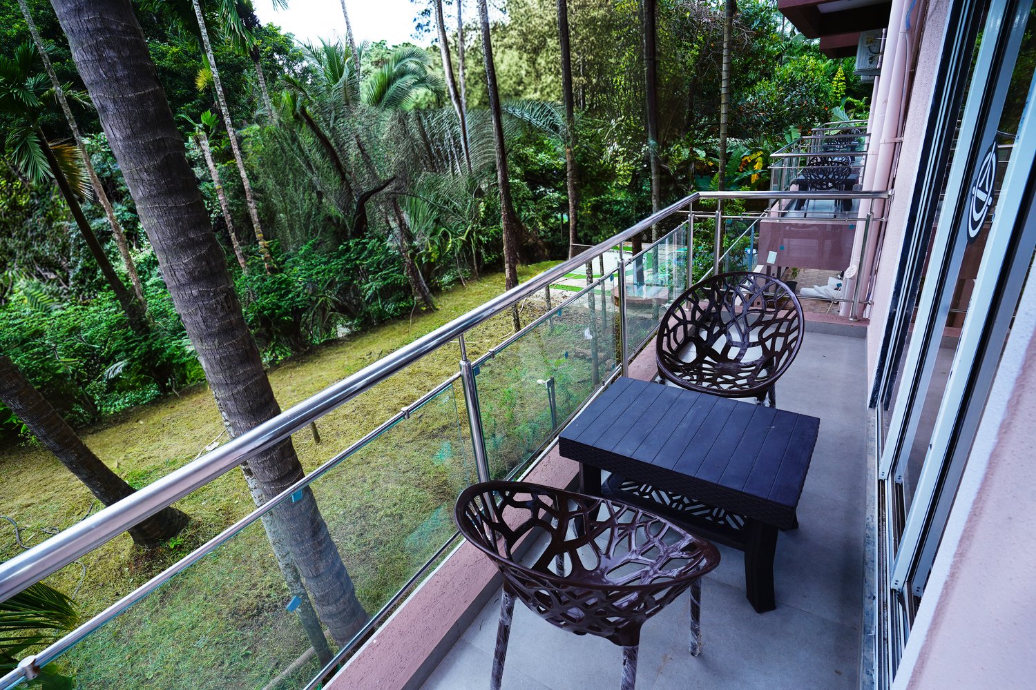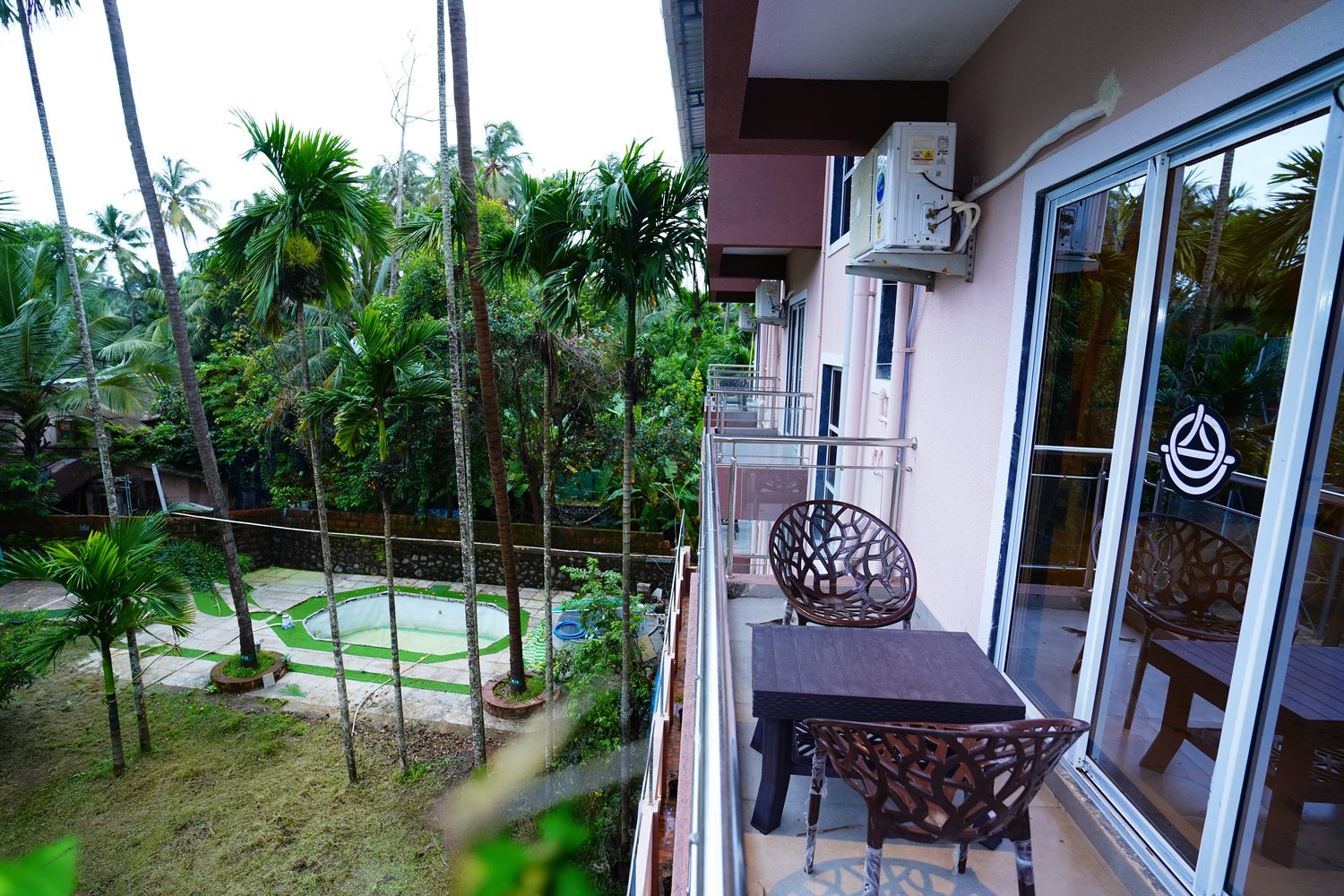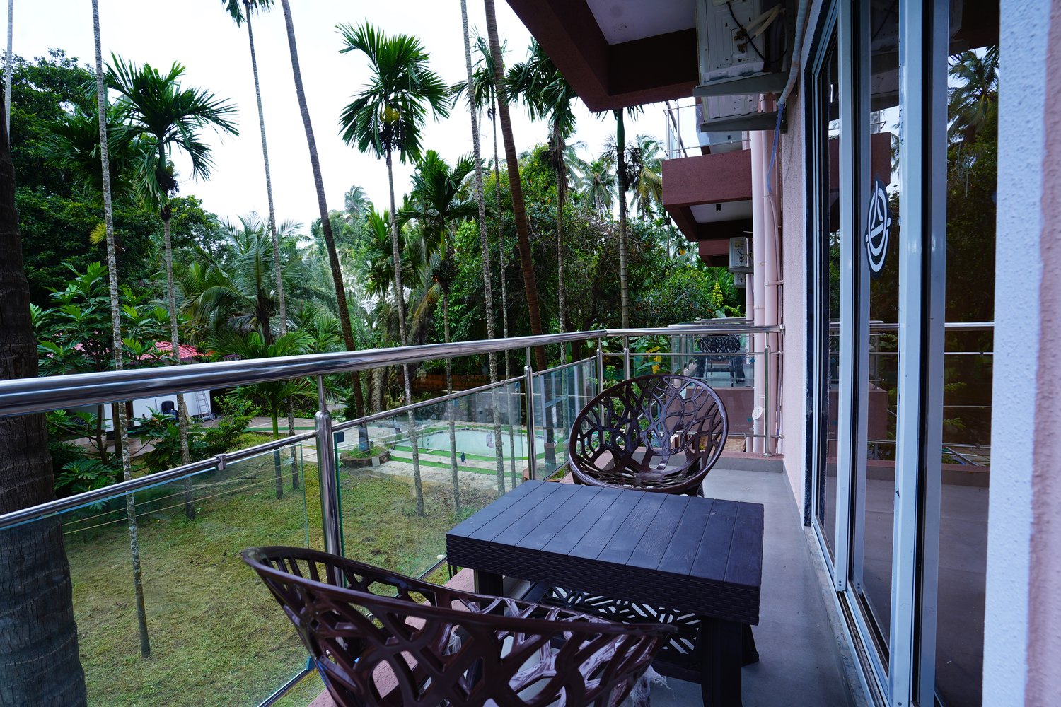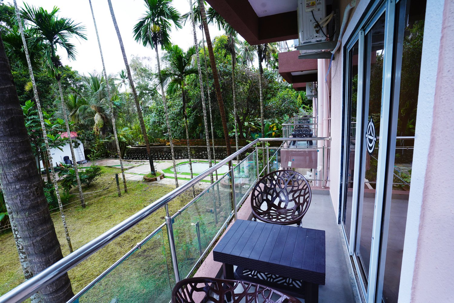 - Swimming Pool: Dive into relaxation at our expansive swimming pool, offering stunning views of verdant coconut trees and the clear blue sky. It's the perfect spot for unwinding or enjoying a refreshing swim.