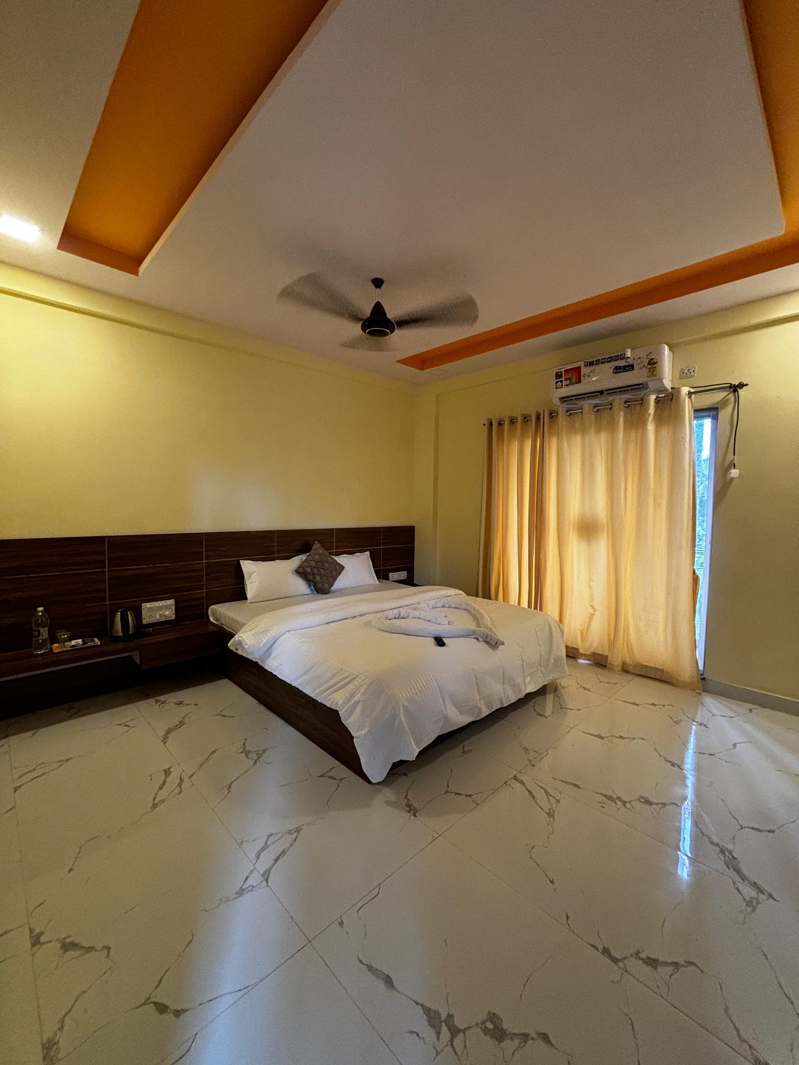 Our hotel features a thoughtfully designed array of 10 AC rooms, ensuring a comfortable and memorable stay. Choose from our 4 spacious Family Rooms, ideal for large groups or families seeking extra space and comfort, or opt for one of our 6 Deluxe AC Rooms, offering a blend of elegance and modern amenities. Each room is equipped with high-quality furnishings and decor to provide a serene retreat after a day of exploration.
